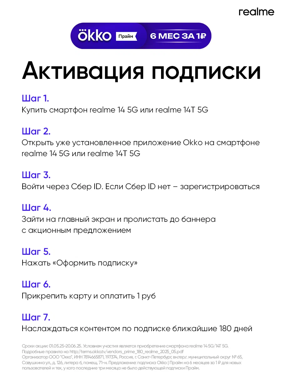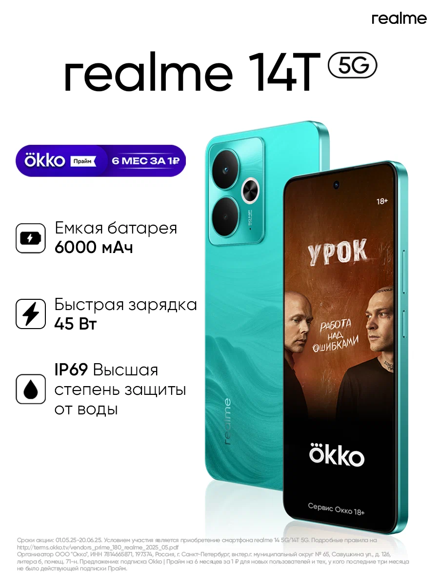 • Смартфон realme 14T 5G (Surf Green, RU/EAC)