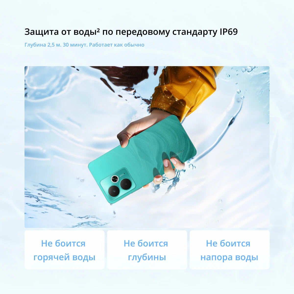 Смартфон оснащен мощным процессором MediaTek Dimensity 6300 5G с 6-нм техпроцессом и восемью ядрами, разгоняющимися до 2,4 ГГц. Это обеспечивает высокую производительность и быстродействие устройства.
