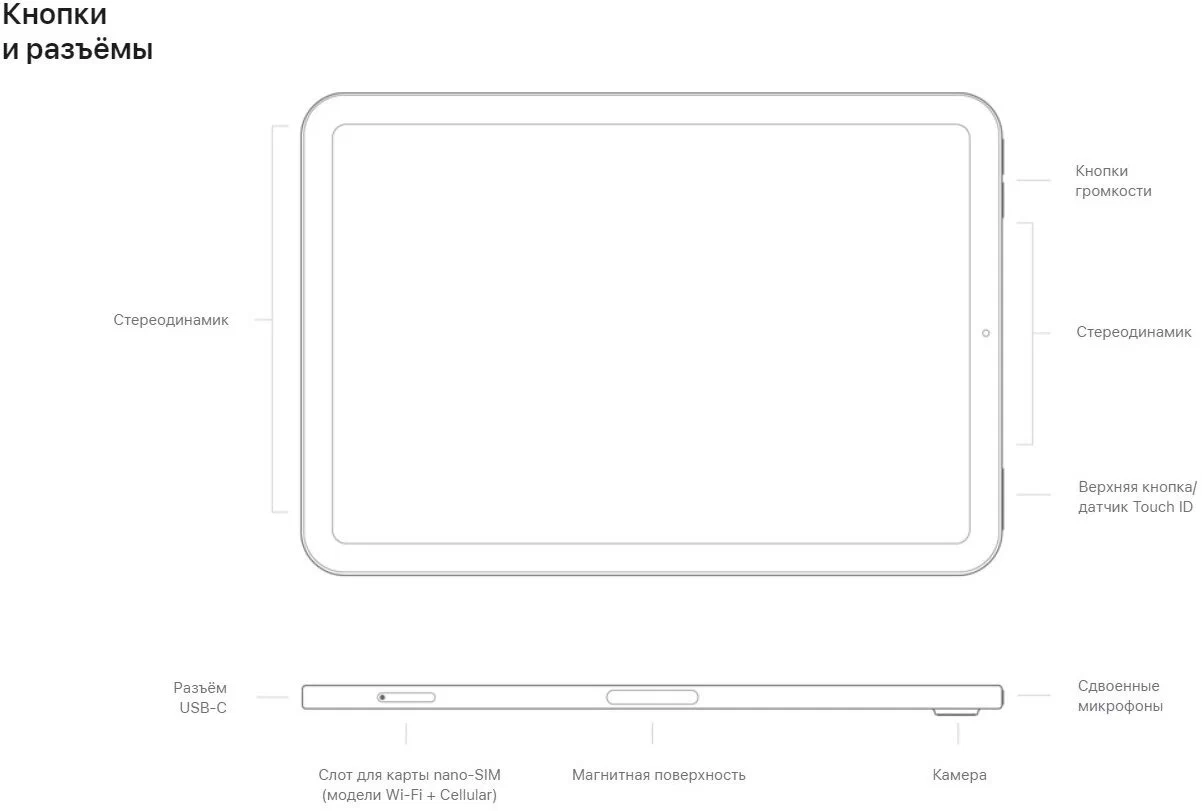 — планшет; — кабель USB‑C для зарядки (1 м); — адаптер питания USB‑C мощностью 20 Вт; — инструкция.