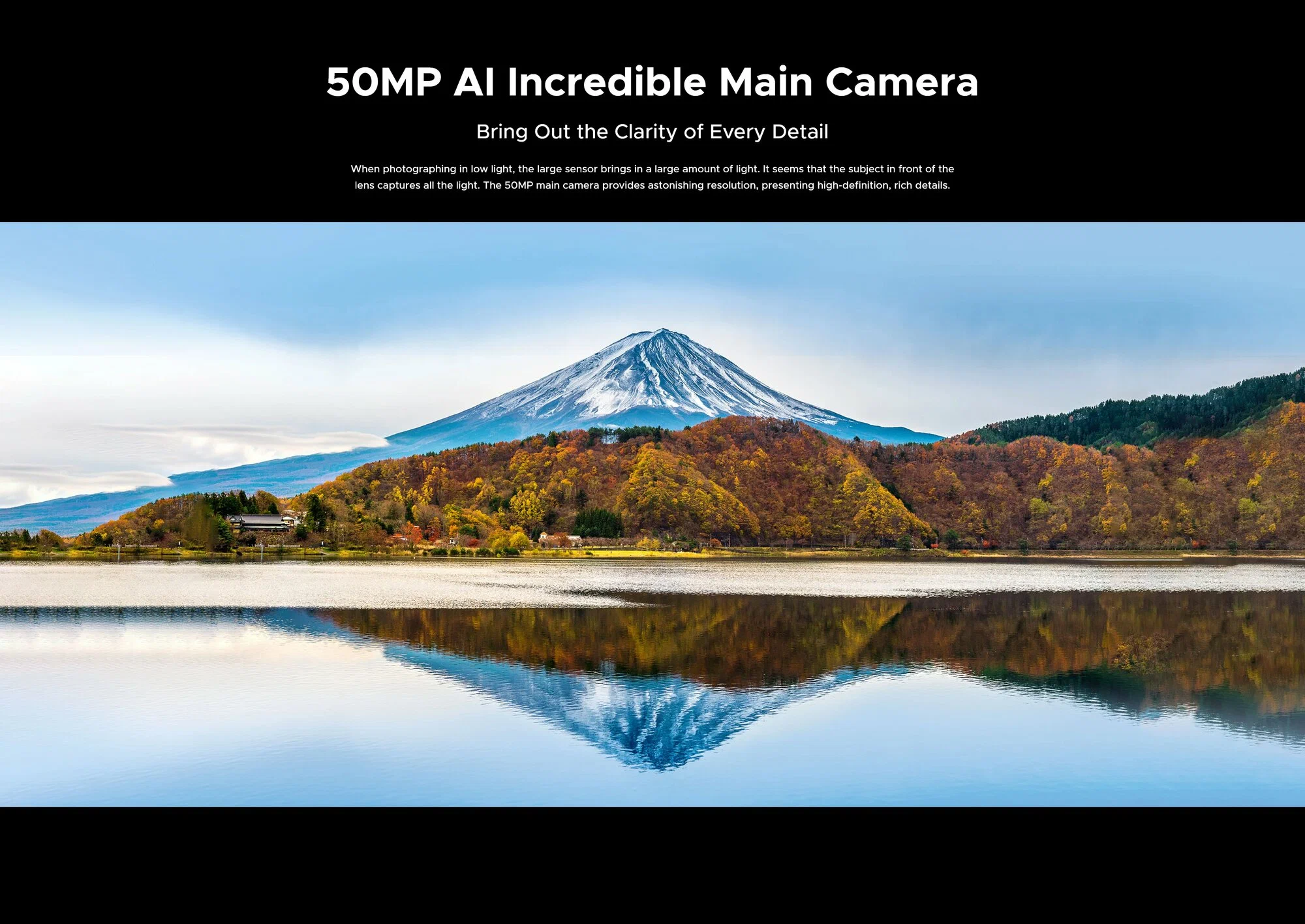 Тройная основная камера включает 50 МП основной объектив, 12 МП камеру ночного видения и 8 МП широкоугольный объектив, позволяя делать качественные снимки в любых условиях. Фронтальная камера 32 МП обеспечит отличные селфи и видеозвонки.