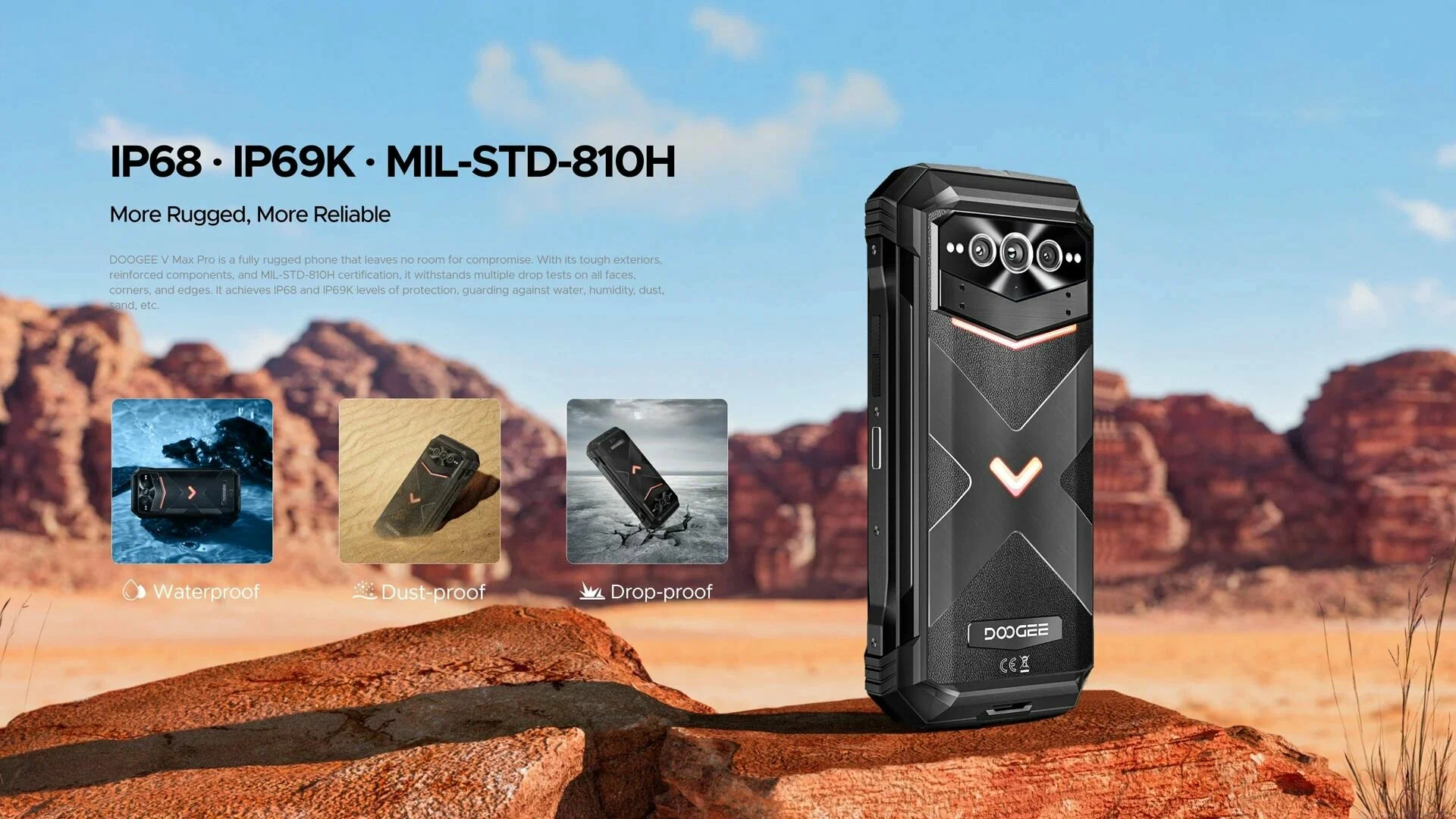 • Стандарты IP68, IP69K, MIL-STD-810H — устойчив к воде, пыли, ударам и экстремальным температурам.