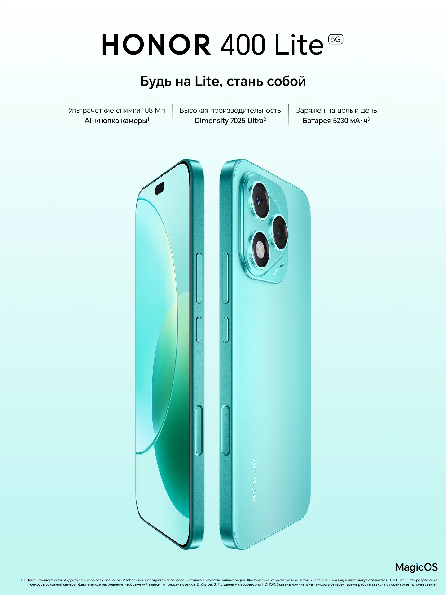 Смартфон HONOR 400 Lite — это современное устройство, которое сочетает в себе передовые технологии и стильный дизайн.