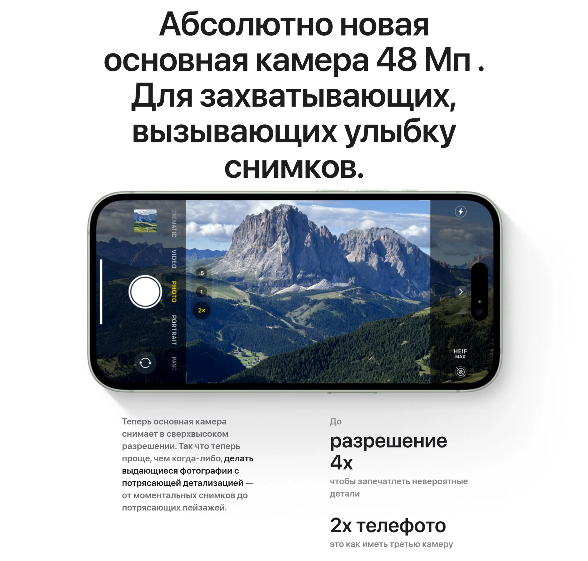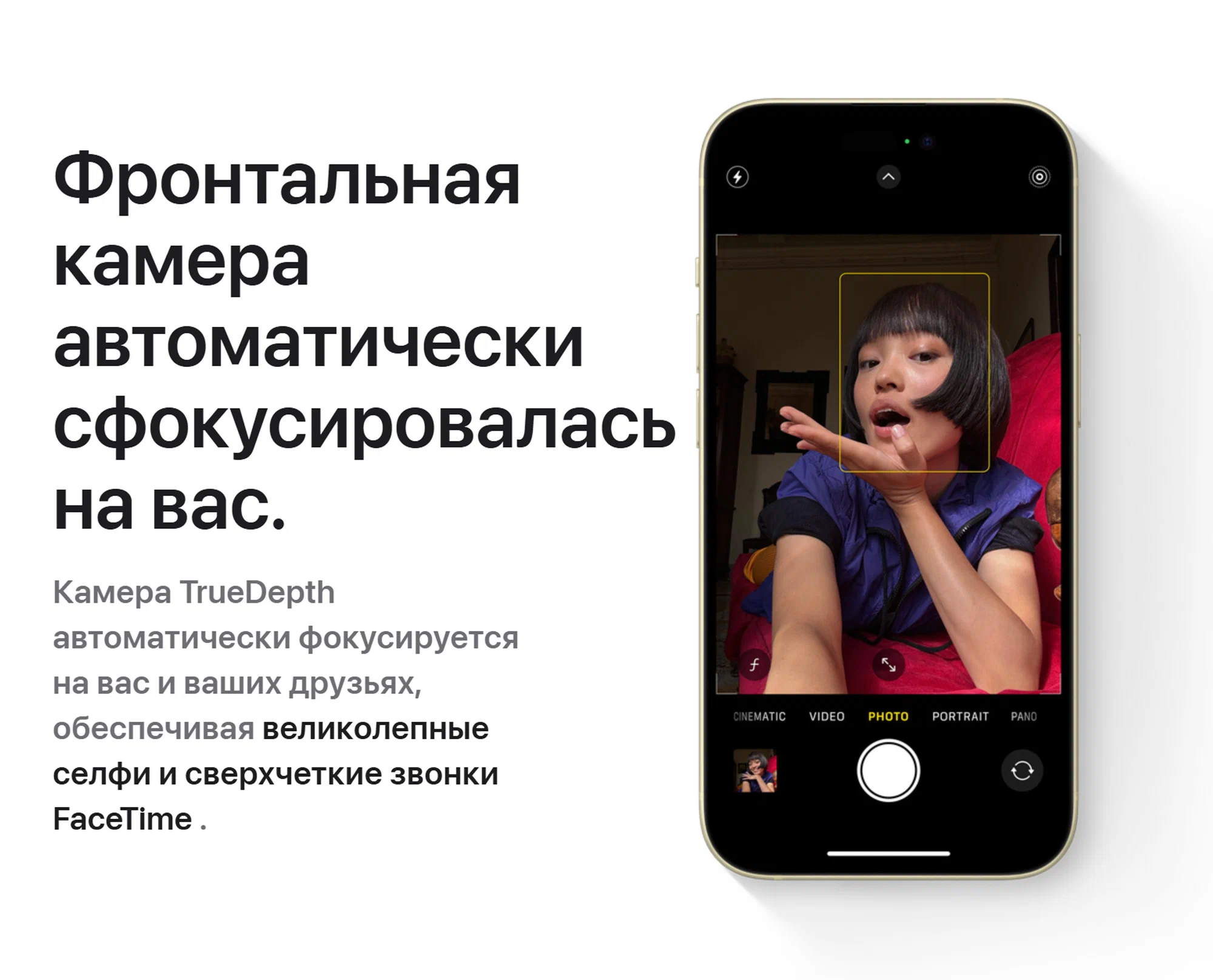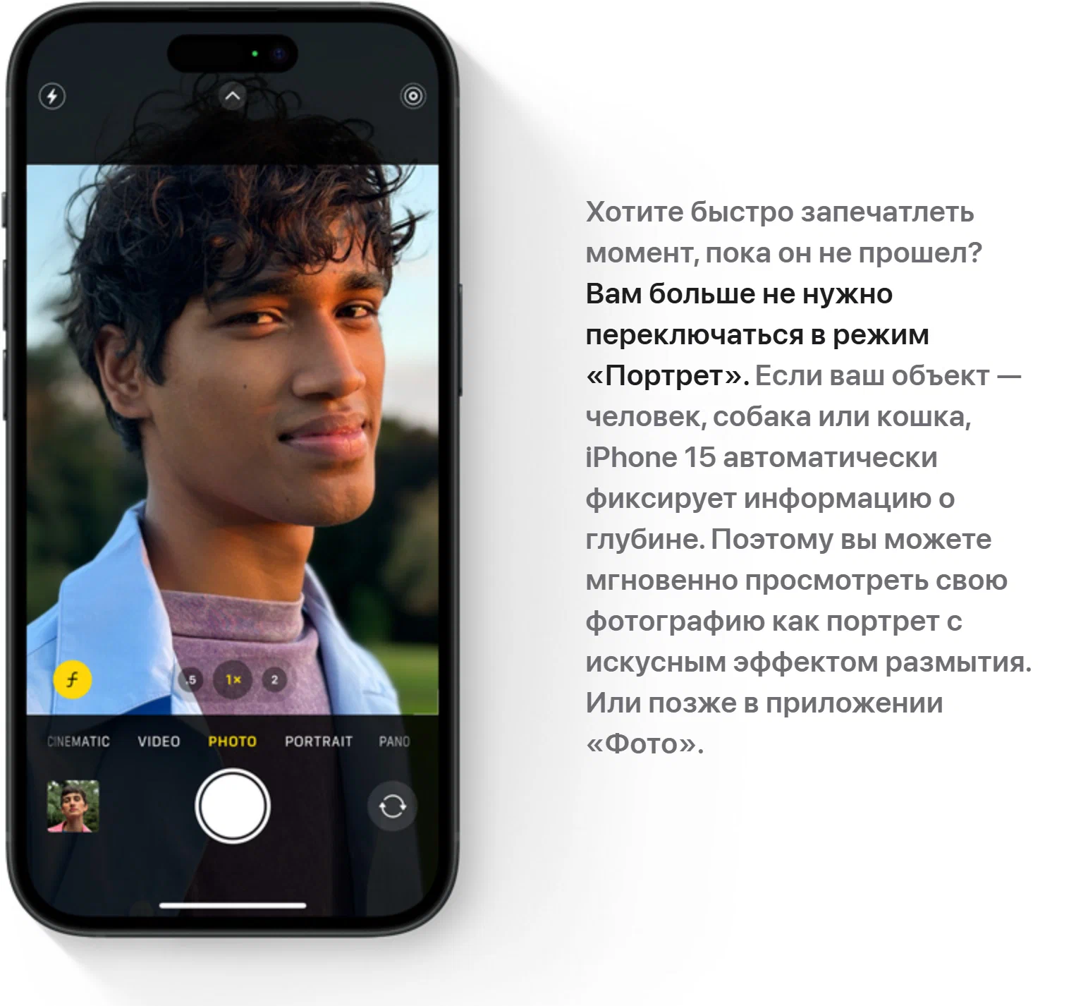 Камера iPhone 15 с разрешением 48 МП и оптической стабилизацией изображения позволяет создавать профессиональные снимки даже при слабом освещении, а режим “Киноэффект” превращает ваши видео в настоящие произведения искусства. Фронтальная камера TrueDepth с функцией Face ID гарантирует безопасность и удобство разблокировки устройства.