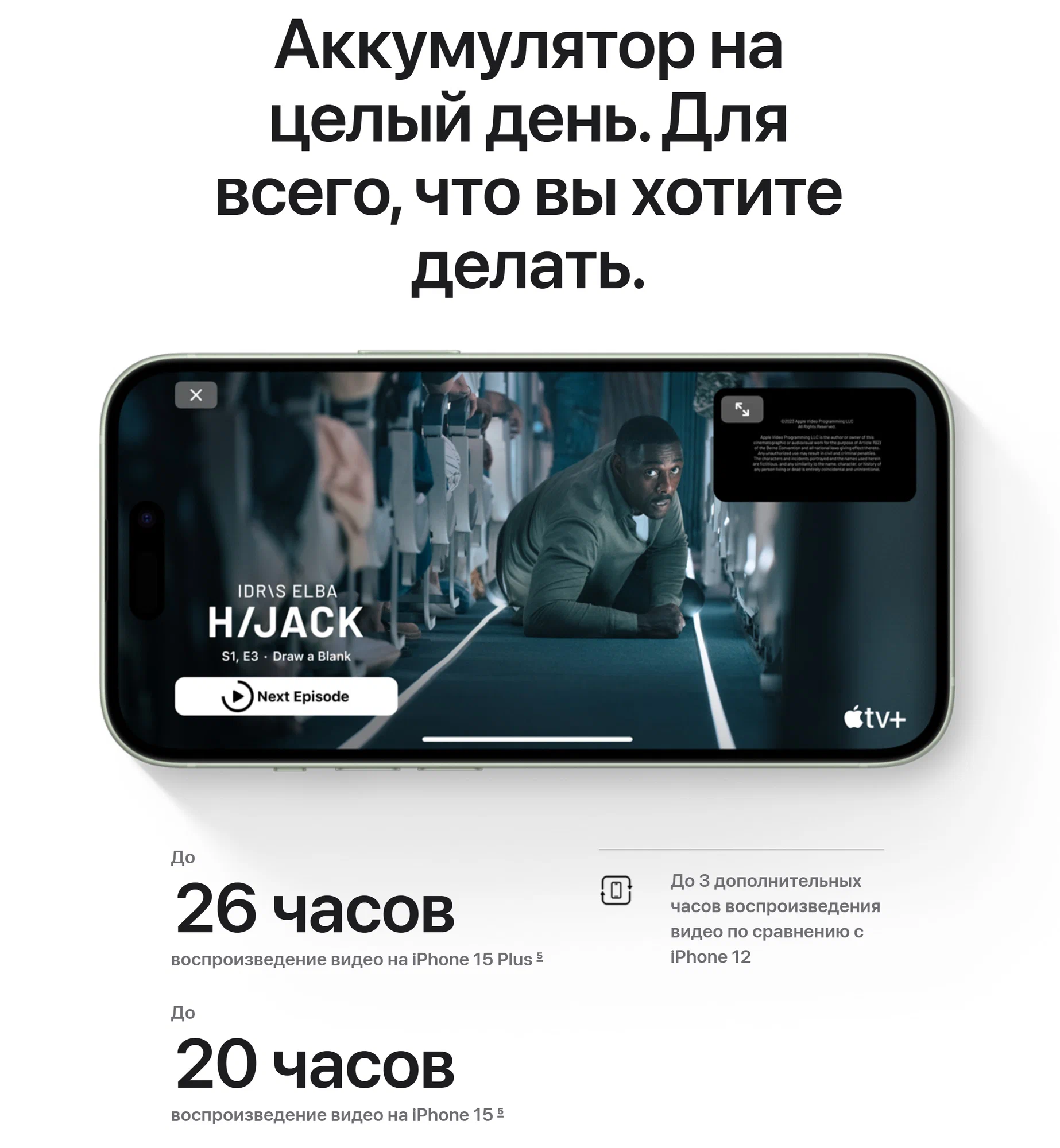 Улучшенная батарея обеспечивает долгую автономную работу устройства, позволяя использовать его на протяжении всего дня без подзарядки. Быстрая зарядка MagSafe позволит быстро зарядить ваш iPhone, а поддержка беспроводной зарядки Qi позволит заряжать iPhone без проводов.