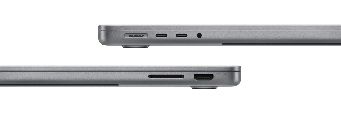 Ноутбук имеет диагональ экрана 14,2 дюйма с разрешением 3024×1964 пикселей и частотой обновления 60 Гц. Тип матрицы экрана — Liquid Retina XDR, что гарантирует высокую контрастность и яркость изображения.