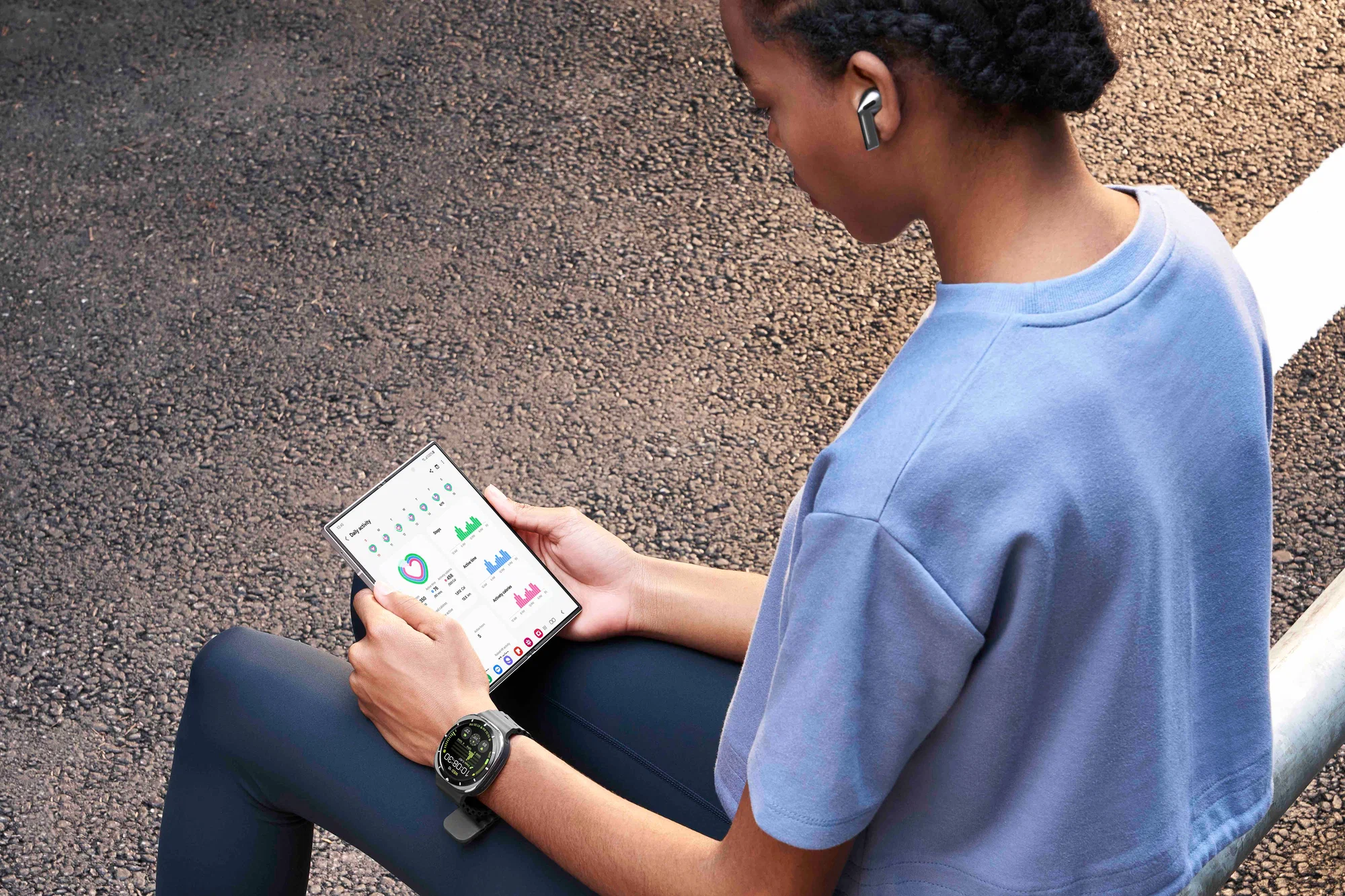 Вместе сильнее: Отправляйтесь в следующее приключение с наушниками Galaxy Buds3 Pro и узнайте свой балл Energy Score с новой моделью Galaxy Watch Ultra или Galaxy Watch7.