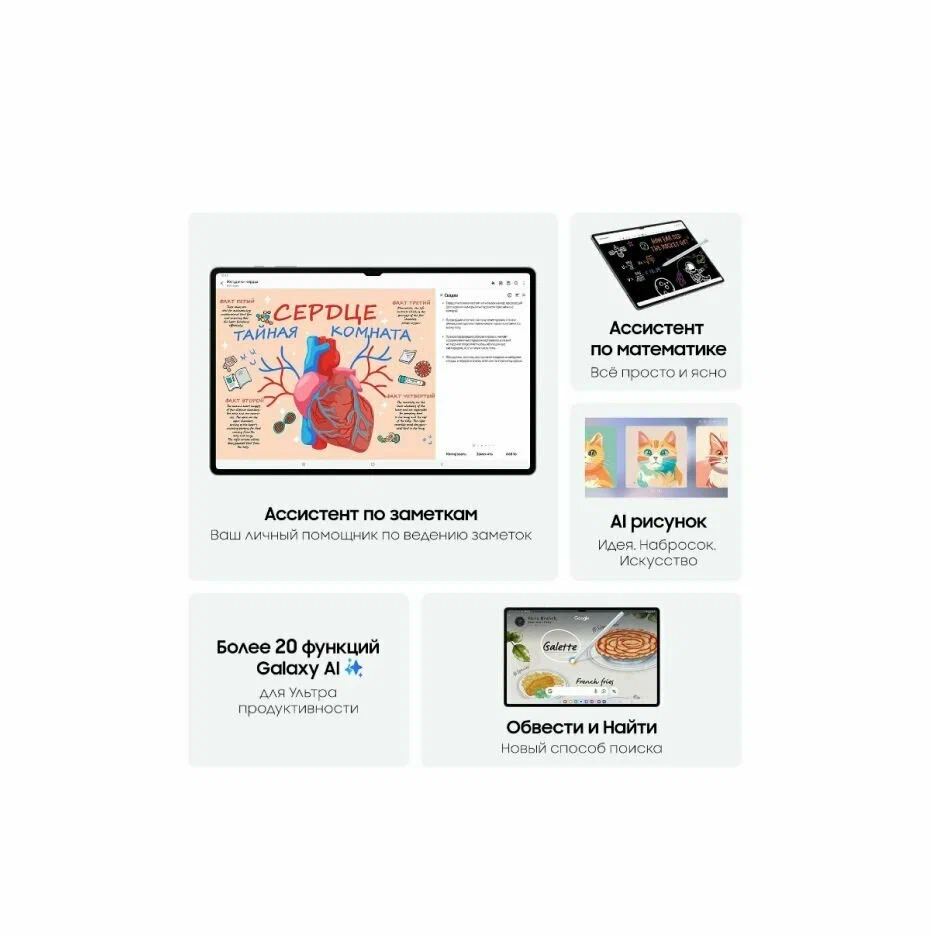 Искусственный интеллект Galaxy AI и электронное перо S Pen, идущее в комплекте, открывают поистине впечатляющие возможности для творчества. На огромном AMOLED-дисплее очень приятно писать или рисовать, а с помощью таких функций, как AI-рисунок или Ассистент по заметкам, реализовать свои идеи будет ещё проще.