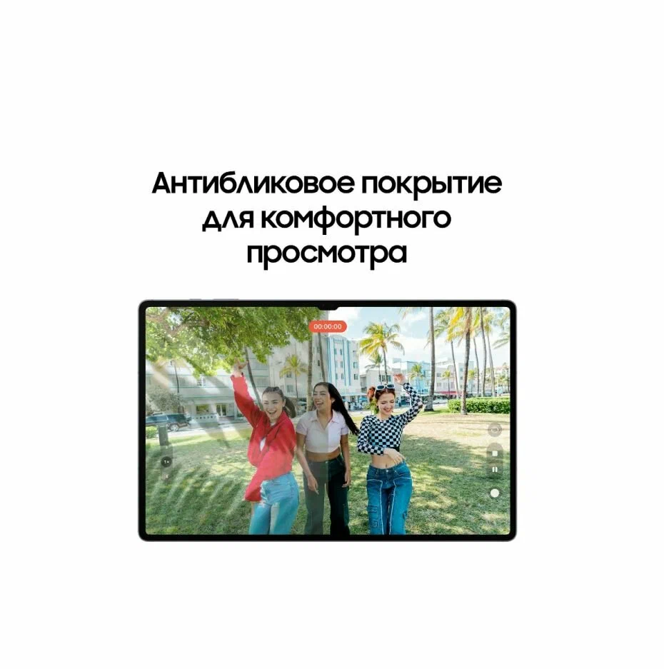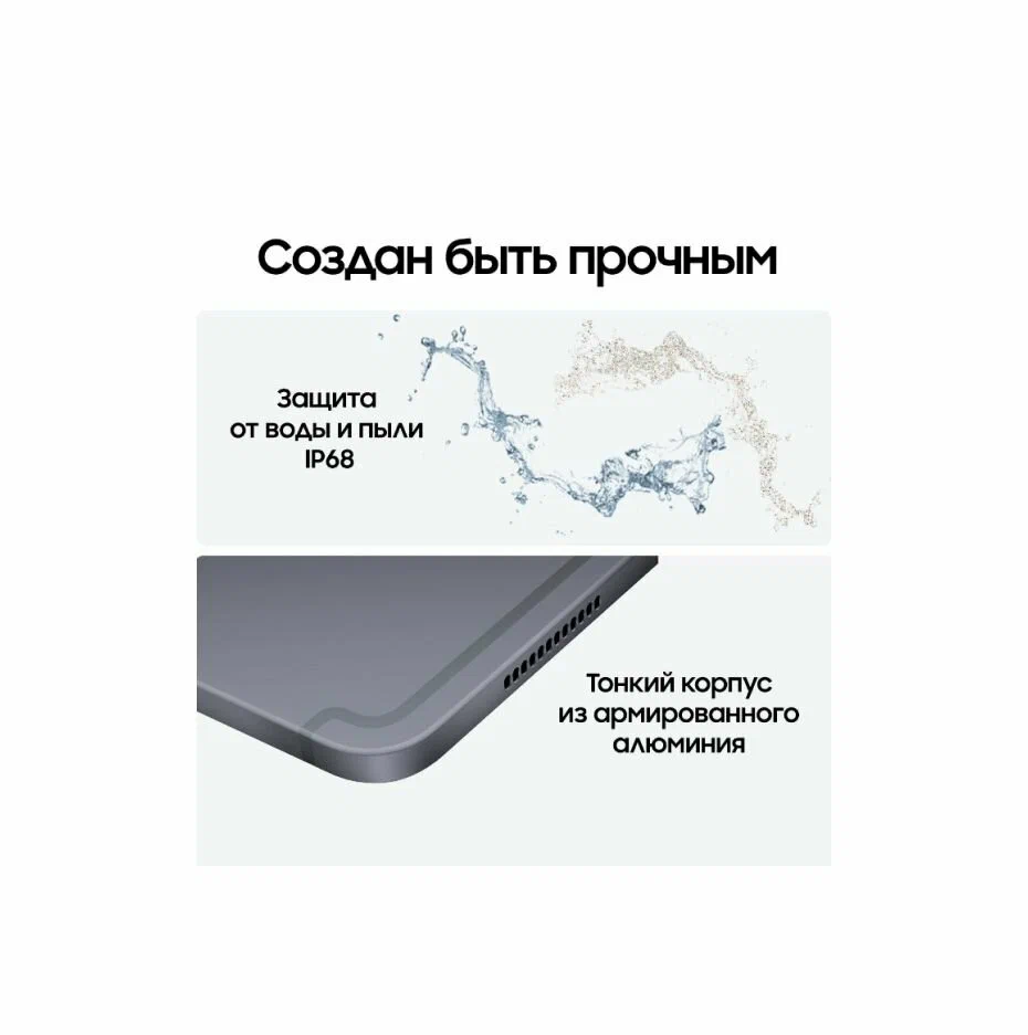 Ультратонкий корпус Galaxy Tab S10 Ultra сделан из армированного алюминия, что придаёт гаджету стильный внешний вид и прочность. Кроме того, планшет получил пыле- и влагозащиту по стандарту IP68.