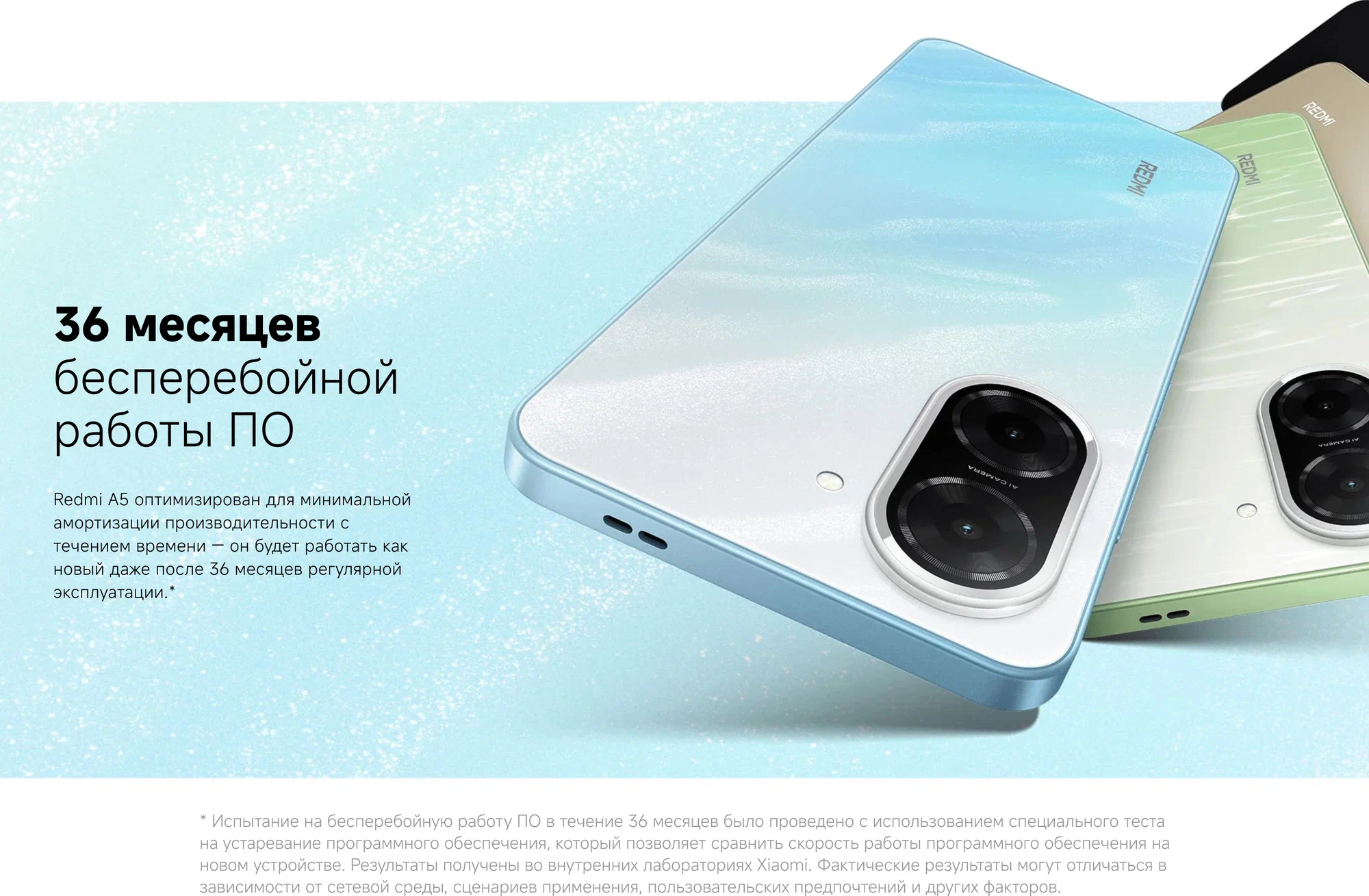 Смартфон Redmi A5 сочетает в себе практичность и надежность, идеально подходя для повседневных задач. Устройство оснащено 4 ГБ оперативной памяти, что обеспечивает стабильную работу при повседневном использовании приложений. Встроенная память объемом 128 ГБ позволяет хранить все необходимые файлы, фотографии и приложения. Экран с диагональю 6.88 дюйма и разрешением 1640×720 на базе IPS технологии обеспечивает яркое и четкое изображение, создавая комфортные условия для просмотра контента. Благодаря поддержке Dual nano SIM, вы можете удобно использовать две сим-карты одновременно. Черный корпус смарфтона придает ему строгий и элегантный вид, подходящий для любого стиля. Redmi A5 — это надежное решение для повседневных задач.