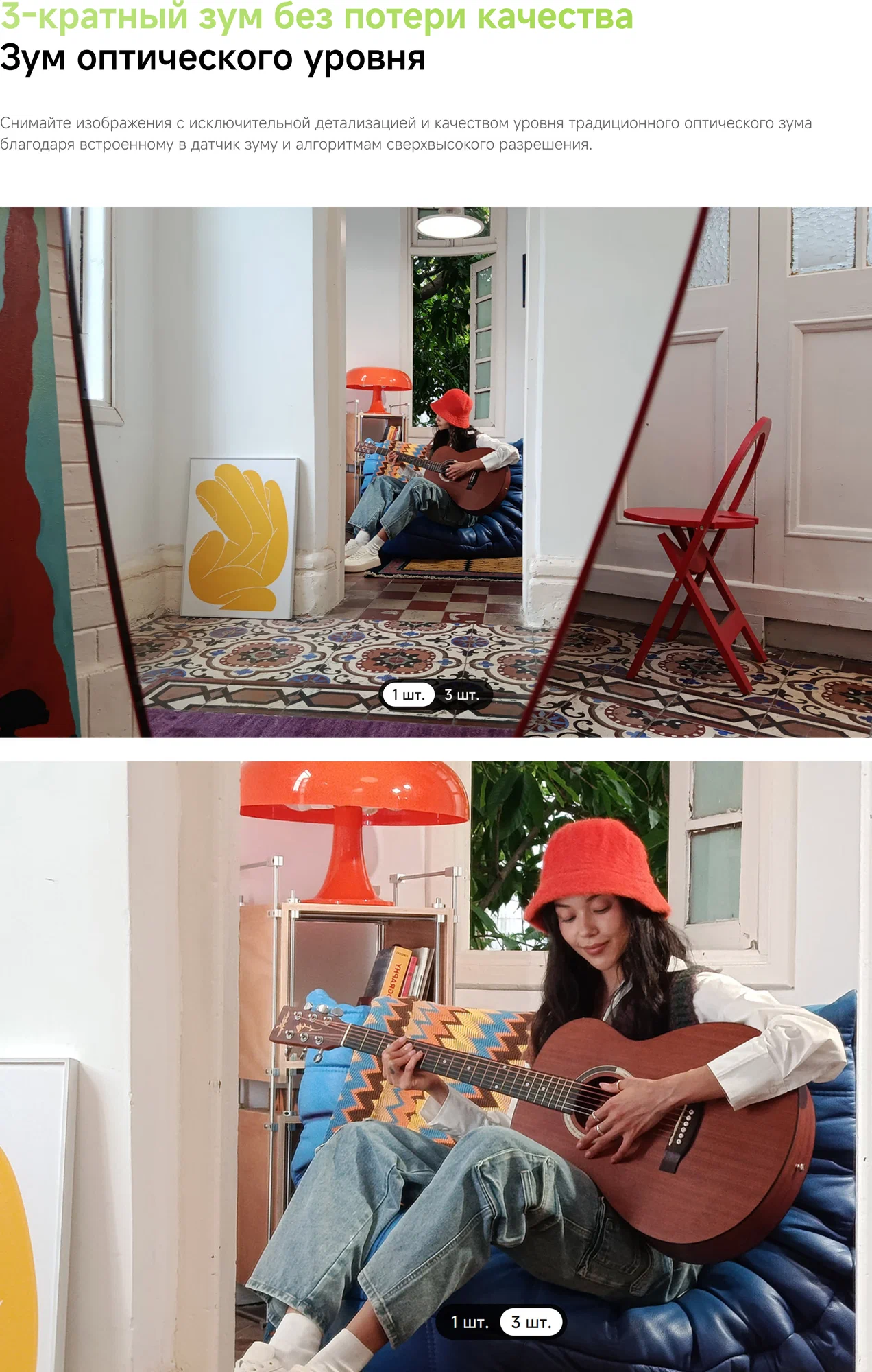 Снимайте изображения с исключительной детализацией и качеством, которые могут соперничать с традиционными оптическими зумами благодаря встроенному зуму и алгоритмам сверхвысокого разрешения.