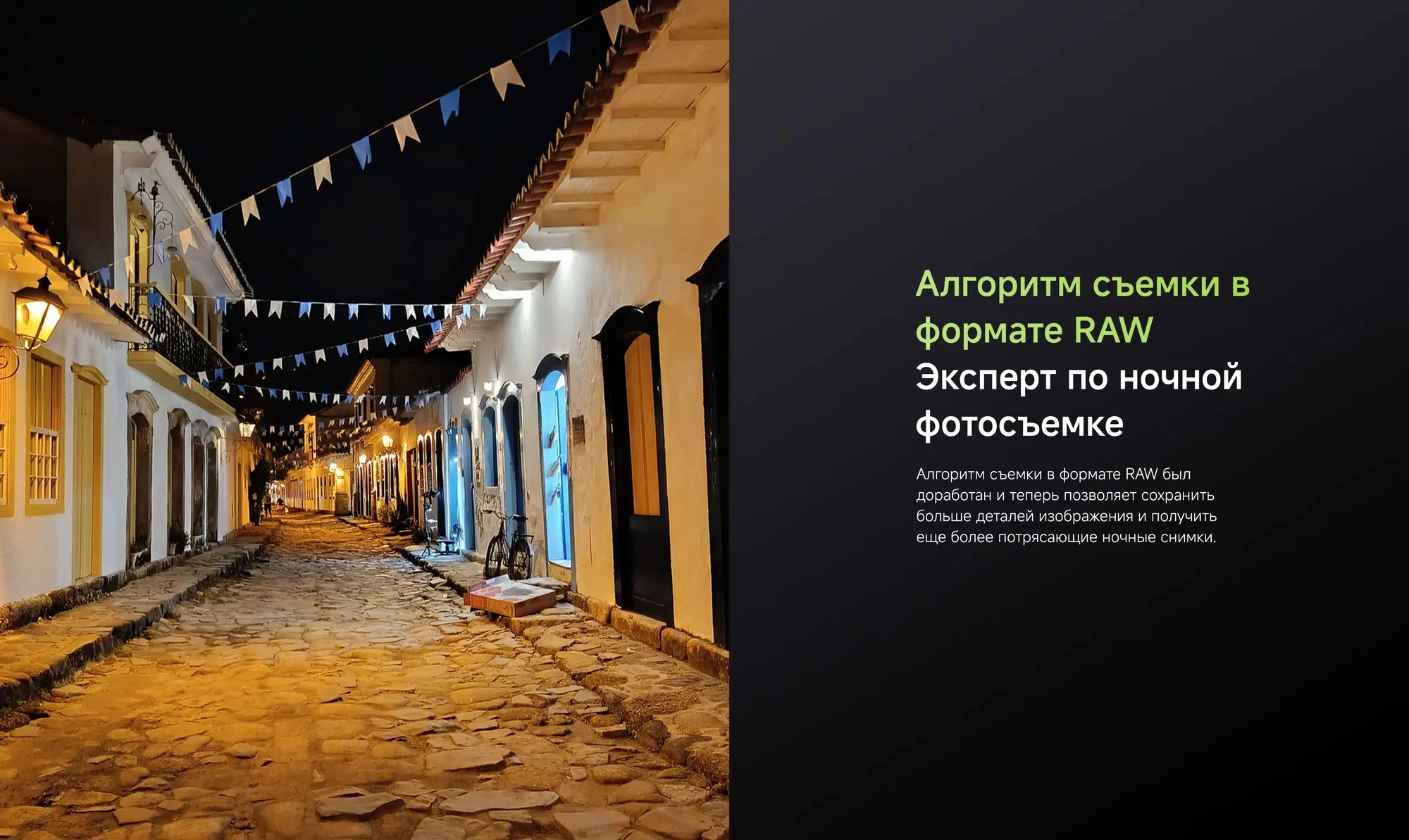 Алгоритм RAW-обработки был усовершенствован, что позволило сохранить больше деталей изображения и сделать ночные снимки ещё более потрясающими.